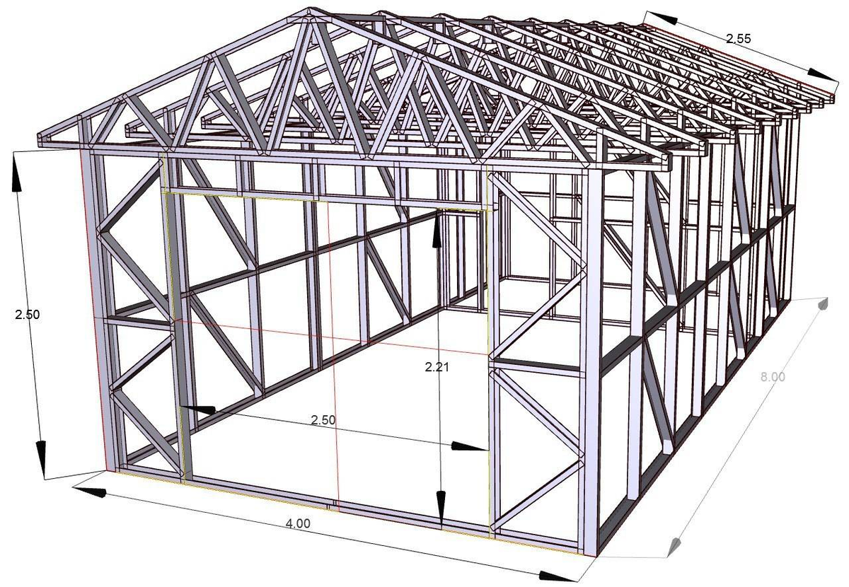 Составьте проект: Нарисуйте эскиз размеров всех элементов каркаса, расположения ворот и окон (если нужны).
