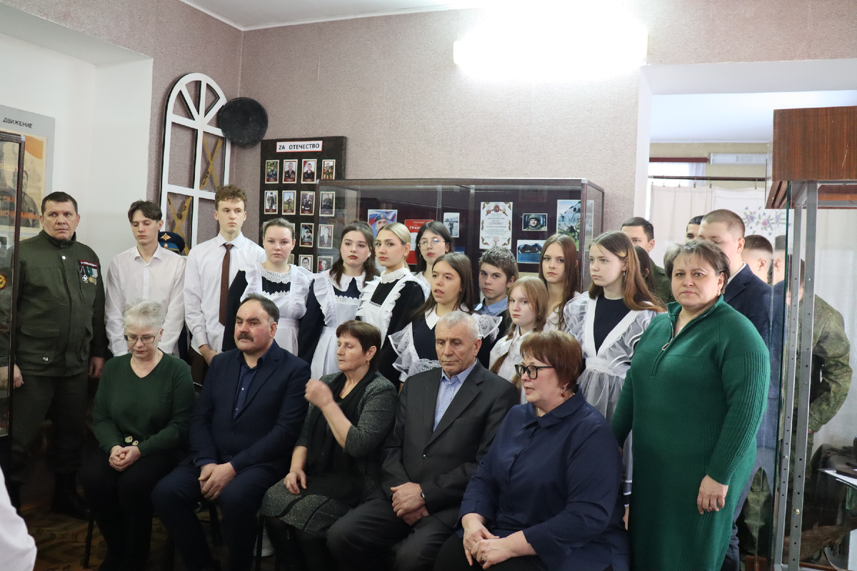 В минувший четверг, 20 февраля, в Ардатовском краеведческом музее в зале воинской славы состоялось открытие выставки-экспозиции «Za Отечество», посвященной участникам СВО, погибшим в ходе выполнения воинского долга. В торжественной церемонии приняли участие заместитель главы администрации района Н.В. Еремина, муниципальный координатор Фонда «Защитники Отечества» Н.Н. Коробкова, родители Героя России Григория Слугина - Александр Григорьевич и Татьяна Васильевна, приемный отец Олега Лопаткина Вячеслав Сергеевич Новиков, мама Алексея Кузнецова – Светлана Геннадьевна, а также ученики Баевской средней школы им. Героя РФ Г. Слугина под руководством советника директора по воспитанию О.М. Слугиной, ученики Тургеневской средней школы с советником директора И.В. Финогеновой, бойцы поискового отряда «Сюпард» аграрного техникума с советником директора М.С. Ворониной и специальный гость – ветеран СВО Иван Петрович Коробков, награжденный за участие в боевых действиях медалями «Бахмутская мясорубка», «Черный крест» и «За освобождение Артемовска».