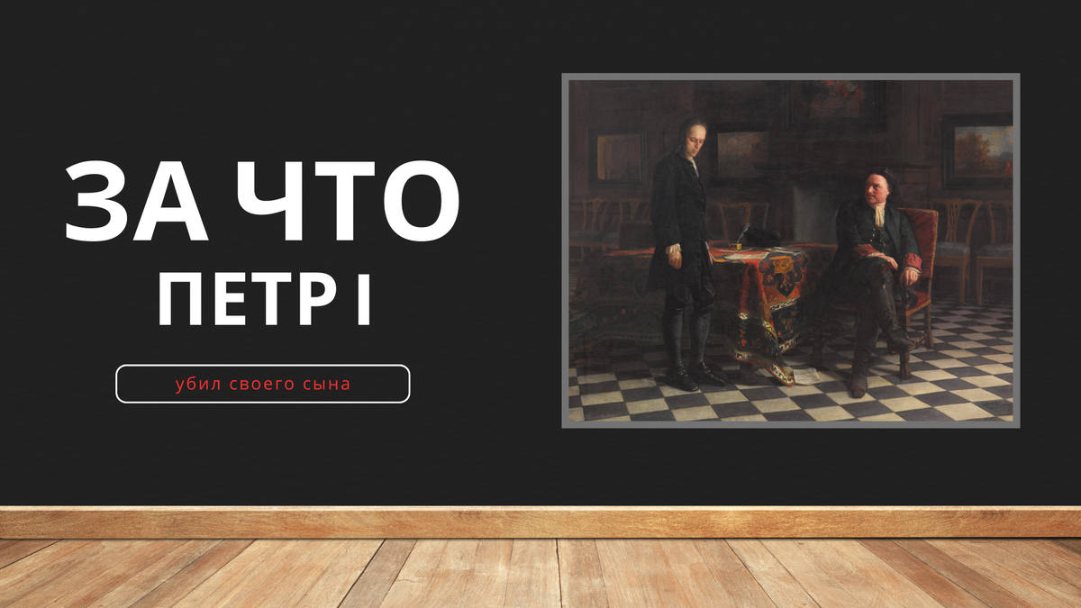 Картина Ге представляет сцену из жизни Петра I: он допрашивает своего сына, царевича Алексея, возвращенного из бегства в Австрию и Неаполь. Действие происходит в Петергофе, в маленьком дворце Монплезире. Грозный царь сидит у стола, на котором лежат письма, уличающие царевича в его интригах. Перед ним стоит цаверич Алексей, притворно или искренне кающийся. Своим внешним видом царевич напоминает дьячка сельской церквушки, не смотря на его черный бархатный богатый наряд. Отец и сын одни — никого в этой сумрачной комнате, с холодным мраморным полом и голландскими картинами на стенах.