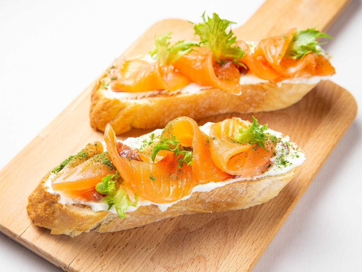 Вкусно, аппетитно, сытно, на завтрак или перекус! А можно и украсить любой праздничный стол. Багет 1 шт Лосось 100 гр Сливочный или творожный сыр 150 гр Зелень для украшения Общее время приготовления: 10 мин Шаг 1: Багет нарежьте по диагонали, чтобы кусочки получились подлиннее, толщиной примерно около 1 см. Обжарьте багет на сухой сковороде с каждой стороны по 1 мин. Шаг 2: Хлеб остудите и щедро смажьте сыром. Затем положите сверху ломтики рыбы. Не экономьте на начинке, её должно быть достаточно. Шаг 3: Добавьте к брускетта с лососем свежую зелень по вашему выбору: укроп, петрушку, зелёный лук или базилик. Приятного аппетита! Поддержите меня лайками и не забудьте подписаться на мой канал. ❤️