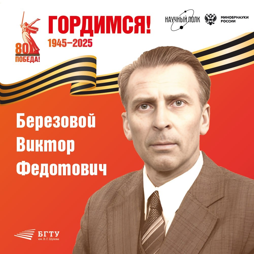 Виктор Федотович Березовой пришёл работать в Белгородский государственный технологический университет им. В.Г. Шухова (в то время – Белгородский технологический институт строительных материалов) в начале 1970-х годов. Более десяти лет возглавлял кафедру механического оборудования. Помимо основной работы, несколько лет на общественных началах руководил штабом строительства корпусов института. Он родился в селе Переволочна Кобелякского района Полтавской области Украинской ССР. Когда в 1941 году началась Великая Отечественная война, Виктору Березовому было всего 13 лет. Беды обрушились внезапно и на долгих два года: жестокая немецкая оккупация, потеря матери... В октябре 1943 года его родное село в Полтавской области освободили части 37-й армии 3-го Украинского фронта. Подростку удалось уговорить артиллеристов взять его с собой. Сын полка помогал маскировать орудия, подносил снаряды, оттаскивал гильзы. Но бои усиливались, и солдаты решили не рисковать жизнью мальчика, отправили его
