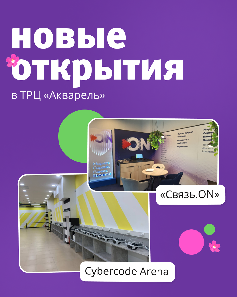 Погода в Волгограде умеет преподносить сюрпризы – с этим не поспоришь. Не отстаём от стихии и делимся инфоповодом о 2-х открытиях в нашем торговом центре! Единое пространство, где собраны техно-товары, а также банковские, страховые, юридические продукты, услуги операторов связи и качественныи консалтинг. В мультицентре помогут разобраться в технологических и финансовых нюансах продуктов и услуг, подберут оптимальное решение для вашей задачи. VR-арена позволит примерить на себя роль кибербойца, принять участие в динамичных боях, исследовать футуристические локации и прокачивать свои навыки. Полная свобода действий и продвинутая графика сделают каждый момент незабываемым! Таким же незабываемым станет и шопинг в ТРЦ «Акварель» с новыми локациями.