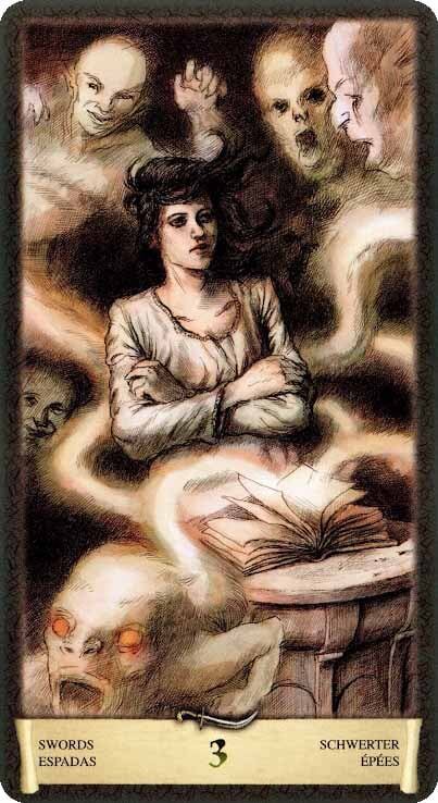 Женщина сидит в оборонительной позе, закрывая руками ментальную чакру. Она спокойна. Возможно, это именно она вызвала демонов для чего-то. Это вынужденная мера. Женщина подавляет в себе ментальные эмоции (закрывает чакру). Работа чакры нарушена, контроль над умом потерян, а это значит, что это может породить (освободить) чудовищ. Демоны окружили женщину плотным кольцом, лишая ее общения с миром. Женщина хоть и понимает, что натворила, но в сторону не уходит и берет на свои плечи всю ответственность за происходящее. Мне эта женщина кажется олицетворением мужества. Она ожидала подобного исхода, готова защищаться. Демоны выпущены –шансы потеряны, но в рукаве женщины есть козырная карта (демон с красными глазами) –возможность в последний момент «разрулить» ситуацию. (ИЗ МОЕЙ ПРОРАБОТКИ КОЛОДЫ ЧЕРНЫЙ ГРИМУАР) Каждый поймет эту карту по-своему. Потому что правда, как оказывается, у каждого своя. НАПОМНЮ, что любой из вас может заказать у меня расклад на таро на любую тему.