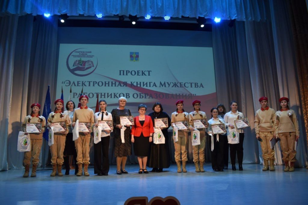 Фото Елены Крестьяновой, «ТАМАНЬ». В Темрюке презентовали проект «Электронная книга Мужества работников образования». Проект был запущен к 100-летию образования Темрюкского района. Он посвящён учителям и работникам образования – участникам, ветеранам Великой Отечественной войны, труженикам тыла, участникам боевых действий. Имена героев заносятся в книгу, чтобы сохранить и увековечить память о людях. Участники проекта собирают истории, воспоминания, фотографии, документы. Информация будет представлена на сайте и в группе в социальной сети «ВКонтакте». Электронный формат книги выбран, чтобы у большего количества людей был доступ к ней, чтобы каждый имел возможность поучаствовать. Первые 26 имён наших земляков уже занесены в книгу Мужества. Проект объединил детей, педагогов, родителей. В работу включились юнармейские отряды. Свои доклады ребята представили на презентации. Инициатором проекта выступила Т