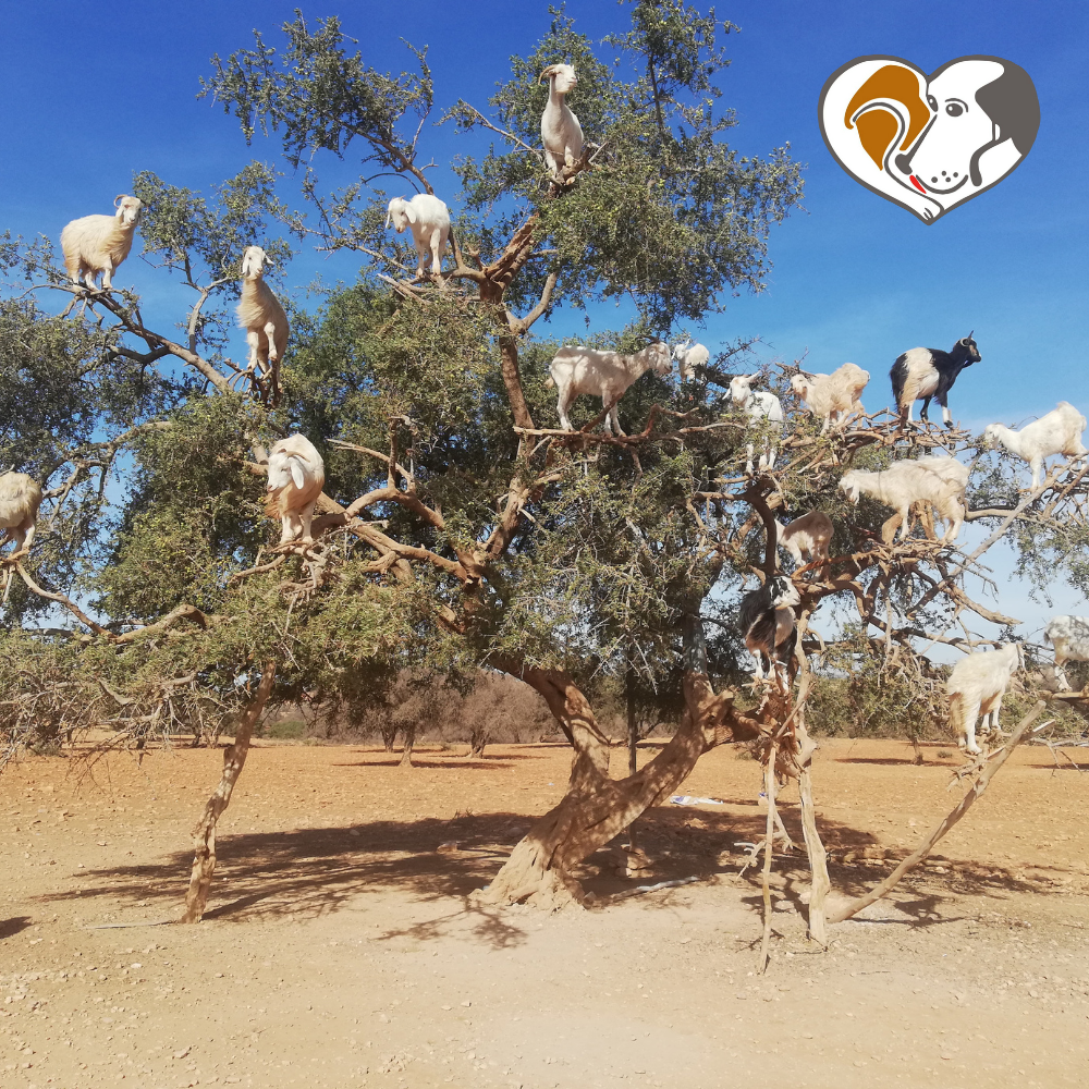 Марокканские козы знамениты во всем мире благодаря своей ловкости. Им не составляет труда забраться на самую верхушку дерева для того, чтобы полакомиться его листвой и плодами. Особенно в почете у козочек — колючая аргания. После поедания животными плодов пастухи собирают косточки с земли, из них получают ценное аргановое масло путём прессования, а оставшиеся семена попадают в землю и дают новые ростки: польза для всех.