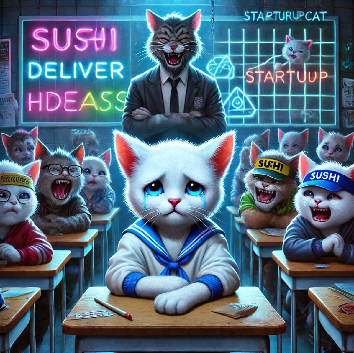 Белый котик по имени Стартапер сидит за последней партой класса. На школьной доске решают задачи по математике, но его мысли далеко — он придумывает идею глобальной интернет-компании. Одноклассники перешёптываются и посмеиваются: у каждого из них более "практичные" планы на жизнь. Впереди сидит котёнок в повязке с логотипом суши-бара — он хвастается, что после уроков помогает семье развивать доставку суши. Рядом дворовый кот с маслянистыми лапками рассказывает, как работает в дядином шиномонтаже, а полосатый котёнок из строительной бригады уверяет, что строить дома куда реальнее, чем «сидеть в интернете». Учитель, услышав мечтательный ответ Стартапера о будущем, качает головой: «Глобальная интернет-компания? Спустись на землю, мечтатель». Класс взрывается смехом, а белый котик смущённо прижимает уши. После уроков Стартапер выходит в пустой школьный двор с опущенным хвостом. В его голове смешались сомнения и обида — неужели его мечта и правда смешна? На скамейке под старым дубом он дост