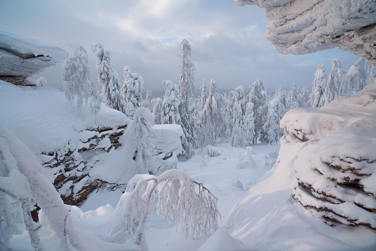 Морозный воздух щипал лицо, и каждый вдох выдыхал облачко пара в безмолвное царство снега. Пермский край встретил меня неласково, но величественно. Бескрайние снежные поля, словно белоснежное одеяло, накрыли все вокруг. Вдали, сквозь заснеженные вершины, проглядывали очертания гор, словно громадные, покрытые инеем скульптуры, застывшие во времени. Первая остановка – загадочный каменный город. Фотографии, которые я сделал там, показывают каменные изваяния, укутанные в пушистые снежные шубы. Они казались еще более величественными и таинственными в этом зимнем убранстве, словно древние стражи, охраняющие секреты Пермской земли. Дальше, дорога пролегала через заснеженные леса. Деревья, одетые в белоснежные наряды, стояли неподвижно, их ветви покрыты тяжелым инеем. Солнце, пробиваясь сквозь облачный покров, освещало их, превращая лес в сказочное царство. На одном из таких заснеженных холмов я сделал остановку. В тишине, прерываемой только скрипом снега под ногами, я чувствовал себя малень