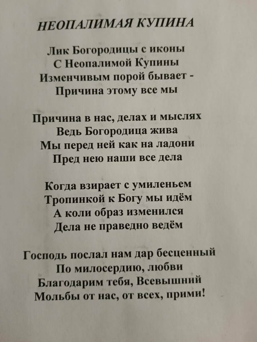 Дорогие братья и сестры хочу поделиться с вами с чудесным исцелением от Матери Божьей перед чудотворной иконой "Неопалимая Купина,,. В детстве я получила травму душевную в детском саду ( воспитатель будучи в нетрезвом состоянии воспитывала меня битьём головы об стену). Вследствиe чего я потеряла дар речи, перестала говорить. Меня лечили, но ничего не помогало, пока не подсказали, что нужно водить меня в церковь каждое воскресенье и открывать двери церкви. По милости Божией речь вернулось, но оставался страх и недоверие к людям. Я закрыла свое сердце от людей. Думала что этим себя оберегаю, но я как сейчас понимаю, что я просто жила со своей болью. Только Бог и Матерь Божия могут человека оберегать. Но я почему то не раскрыла свое сердце батюшке на исповеди. Так и жила с этим чувством одиночества, нехватки чего-то необъяснимого. Потом вышла замуж . По милости Божией брак был и есть счастливый. Свою рану душевную я старалась забыть и о ней не вспоминать. Пока в один