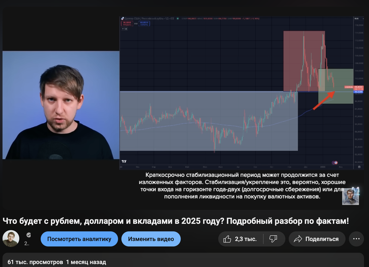 Всем привет, на связи Эван! Думаю, многие, смотря на табло курса, задумываются: - “Может, валюты подкупить?” - “Доллары старые, примут?” - “Может, сейчас выгодный момент для каких-либо покупок?” - “Или может наоборот? Продать, пока не поздно, и доллар по 30 вернется?” Сегодня я подробно отвечу на все вопросы по теме! Что происходит сейчас? Об этом сценарии мы говорили в моем разборе будущего курса валют, скрин 1: и 2: Краткосрочный геополитический позитив позволил рублю укрепиться. Это хорошо! А ведь некоторые не верили и хотели на декабрьской панике закупаться (там вы тоже получили информацию, что это не разумно). Какой курс и выгоды сейчас? Новостные заголовки про доллар по 85 основаны на межбанковском рынке. Но там нам ликвидную валюту не купить. Если посмотреть на реальность, то курс, когда я пишу эти строки, на нашем фьючерсном рынке — 88. Но это только для спекуляций. В обменнике или USDT — заметно выше: 89, 90 и так далее. Все зависит от предложения и объема. Проведем важное