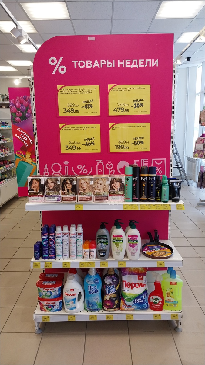 Всем привет, мои дорогие друзья, подписчики и гости моего канала. В Магнит Косметик началась новая неделя скидок, покажу вам витрину и товары, которые можно купить со скидкой по карте. Магазин находится по адресу Ростовская область, Зерноградский район, станица Мечётинская, улица Ленина, 50 Краска для волос Loreal Excellence в ассортименте , цена со скидкой по карте 479.99 руб. Лак для волос Тафт мегафиксация 225 г в ассортименте цена со скидкой 289.99 руб. Спрей для волос Тафт мегафиксация 5 150 мл цена со скидкой по карте 319.99 руб. Гель для волос Тафт мегафиксация 5 150 мл цена со скидкой по карте 249.99 руб. в ассортименте . Сковорода блинная с антипригарным покрытием 22 см цена со скидкой по карте 219.99 руб. Гель-крем для душа Palmolive натурэль 750 мл в ассортименте цена со скидкой по карте 349.99 руб. Антиперспирант Deonika роликовый в ассортименте цена со скидкой по карте 139.99 руб. Гель для душа Palmolive Арктический ветер 3 в1 мужской 200 мл цена со