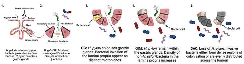 Ученые обнаружили новое взаимодействие между различными видами бактерий в желудке, которое может привести к разработке более эффективных методов лечения предракового состояния. Исследование, проведенное под руководством научного сотрудника Аманды Роситер-Пирсон из *Университета Бирмингема, выявило критическое взаимодействие между бактериями Helicobacter pylori и другими бактериями желудка на предраковой стадии заболевания. Рак желудка занимает четвертое место в мире по смертности от онкологических заболеваний. Инфекция Helicobacter pylori считается основным фактором риска, хотя у большинства инфицированных заболевание протекает бессимптомно. При этом только 1% случаев инфицирования приводит к развитию рака, и причины этого до сих пор не были полностью понятны. Используя современную технологию визуализации, исследователи установили: — Helicobacter pylori колонизирует исключительно желудочные железы — Другие бактерии проникают через слизистую оболочку при предраковом состоянии — Проникно