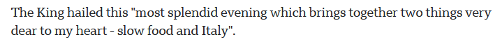 Король Чарльз недоволен фастфудом. Он любит, чтобы еда была приготовлена с чувством, с толком, с расстановкой. Особенно, если речь идёт о его любимой итальянской кухне. Он даже устроил в своём дворце тематический итальянский ужин. Про меню напишу отдельную статью, а сегодня мы сосредоточимся на еде. Всем нам знакомый фастфуд – это два английских слова: fast (быстрый) + food (еда) = fast food Фастфудом называют всё, что можно быстренько съесть на бегу: бургеры, шаверма, сосиски в тесте, картошка фри… В 1989 году итальянец Карло Петрини запустил противоположную идею – готовить, не торопясь, по традиционным рецептам и кушать медленно. И назвал он своё движение «слоуфуд». Как вы уже догадались, слоуфуд состоит из двух английских слов: slow (медленный) + food (еда) = slow food Кстати, по-русски её очень часто так и называют – «медленная еда». На уроках английского учителя и взрослых и детей спрашивают: What’s your favourite food? (Какая твоя любимая еда?) Если бы мы задали такой вопрос коро