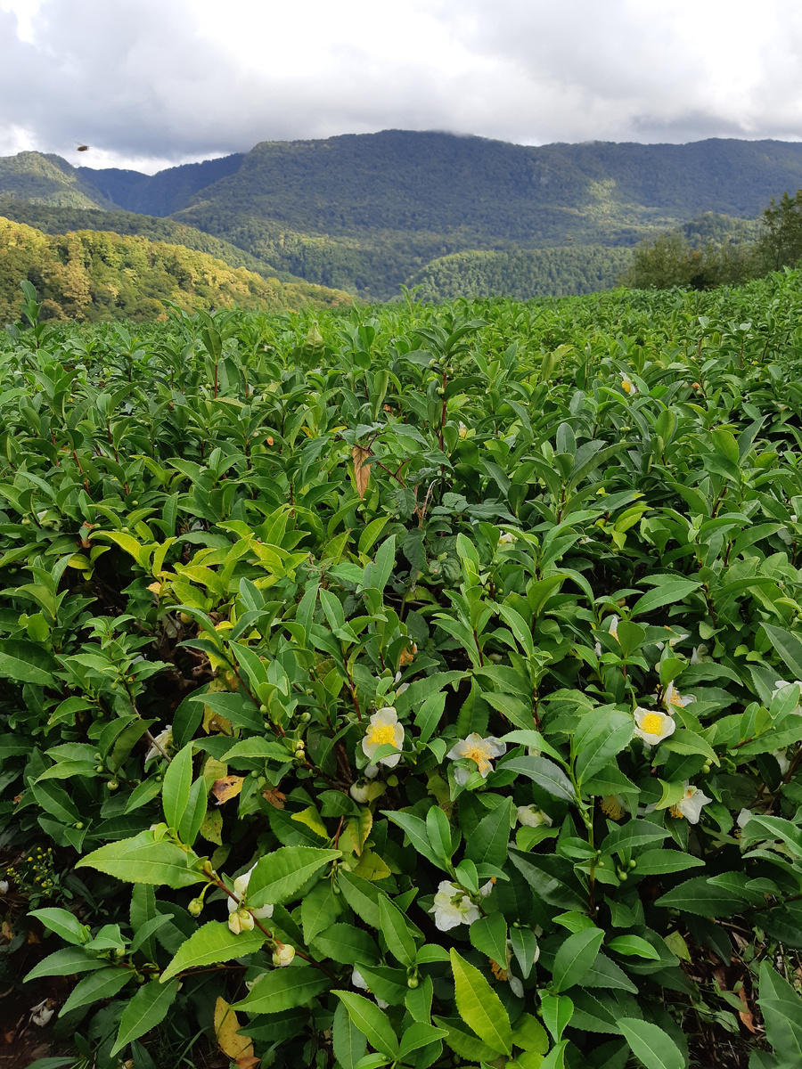 Октябрь оказался тем самым месяцем, когда чай на плантациях цветет. Нам повезло застать разные стадии цветения: от бутонов до получения семян.
