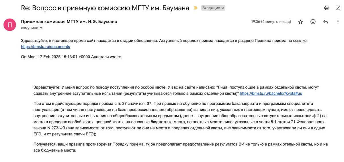 Будьте аккуратны с официальными сайтами вузов! Скрин выше — наглядный пример, почему сейчас стоит с осторожностью пользоваться официальными сайтами вузов. Изменения в правилах приема вузы должны были опубликовать до 20 января, но вот сайты еще обновили далеко не все, поэтому велик риск наткнуться на устаревшие данные. Сейчас у многих университетов такая проблема: у Финансового университета, Бауманки и других. РТУ МИРЭА уже вывесили новые правила приема, но сами признаются, что они написаны сложным языком и чтобы разобраться, понадобиться много времени: см. видеоролик. Не тратьте свое время на поиск информации на неудобных сайтах — приходите ко мне 4 марта в 19:00 по МСК на вебинар «Вступительная кампания 2025: почему прежние стратегии больше не работают и как не потерять желанное место в вузе?». Я разберу все утвержденные изменения и понятным языком объясню, как действовать, чтобы точно поступить. Регистрируйтесь в боте — ближе к событию туда придет ссылка на встречу.