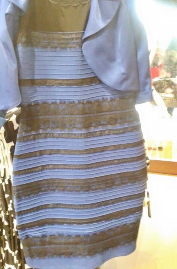 26 февраля 2015 года дизайнер одежды выложила фото черно-синего платья, ну или бело-золотого. Его зарепостила пользовательница, которая спросила у друзей, какой цвет они видят. Так покатилась машина обсуждения оптической иллюзии, а интернет раскололся на две части.