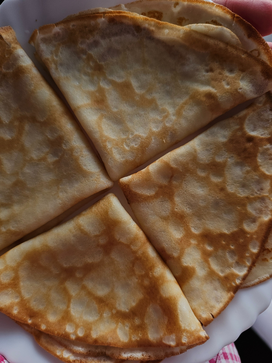 Блины на сметане 2 яйца Щепотка соли 2 столовых ложки сметаны 1 столовая ложка сахара 4,5 столовых ложки муки 350 мл. Молока 1 столовая ложка подсолнечного масла Яйца смешиваем с сахаром добавляем соль, сметану и муку. Все это разбавляем молоком и добавляем масло. Выпекать на сухой сковороде. Блинчики получаются мягкие и очень вкусные. Подаём со со сгущёнкой, сметаной и джемом. Приятного аппетита!!!