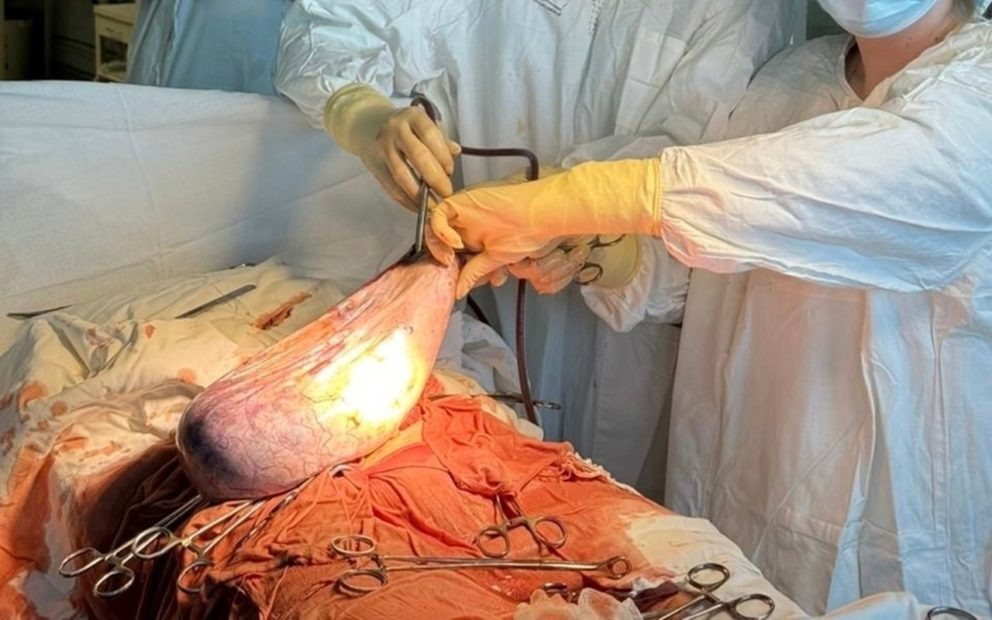 Во время обследования врачи обнаружили гигантскую опухоль яичника. Она сдавливала смежные органы брюшной полости, киста яичника содержала около 12 литров жидкости. Размер опухоли поразил даже опытных медиков.