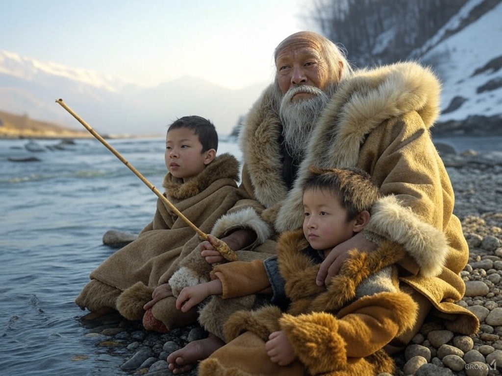 Наставник: Это, кажется, монгольская притча, про монголов. Причём, даже не столько монголов, сколько, скорее, с Алтая, потому что там есть и сопки, и горные речки, и невысокие горы, и люди с узкими глазами в меховых одеждах. Скорее, это не монголы: там не степи, а похоже на горы Алтая.