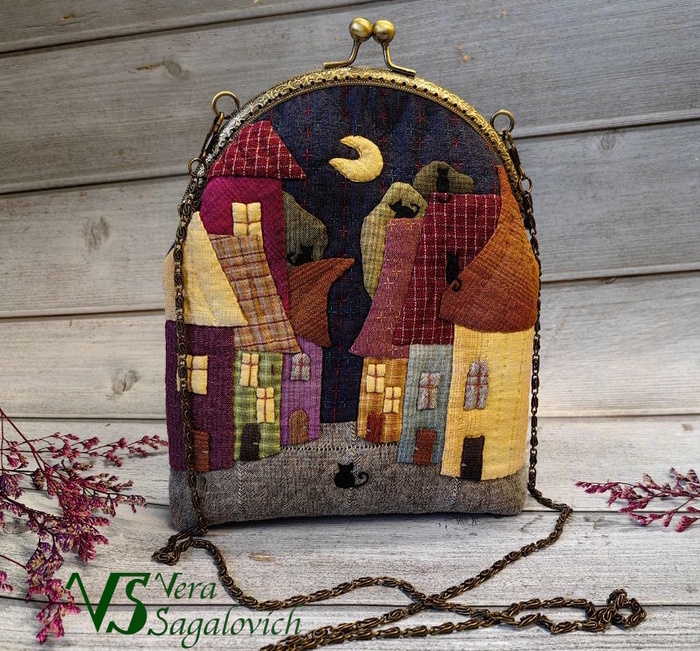 Хотя у меня и собачка, но котиков я тоже люблю...издали))) Вот и сшила такую сумочку - "Город кошек". Процесса не будет (сейчас все силы на запуск ленты доната в ВК в моей группе, где будут совместные пошивы), просто похвастаться. Сумочка выполнена из фактурного хлопка в технике японский пэчворк, уплотнена специальным поролоновым наполнителем, хорошо держит форму. Подкладка из плотного хлопка. Жесткость дна обеспечивается вшитой полоской пластика. Внутри 4 маленьких кармашка (можно положить карты, деньги, ключи и что-то еще некрупное). В сумочку вертикально помещается телефон длиной до 17, 5 см. Размер сумки 19 (высота от линии дна до фермуара) *18 (ширина) *4 (дно) см. Фермуар 16 см, длина цепочки 120 см. И вот небольшой видеообзор Пост автора Vera.Sagalovich. Читать комментарии на Пикабу.