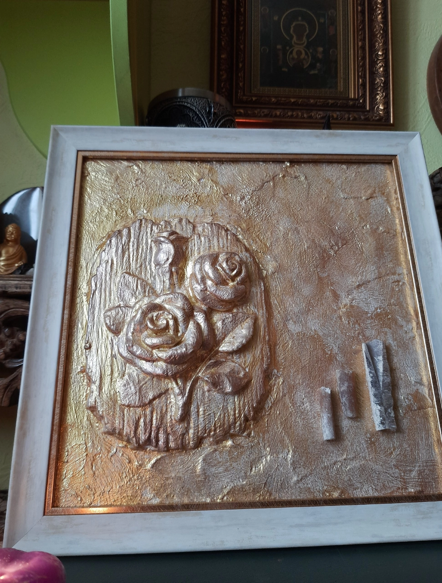 ЛЮБОВЬ И ЗАЩИТА РОДА. Картина - талисман с белемнитом. Этому камню 200 млн лет! Белемнит - это окаменелый скелет (ростр) моллюска. Эти моллюски жили в морях мезозойской эры, примерно от юрского до мелового периодов (около 200-66 миллионов лет назад). Белемнит, будучи окаменелостью, в эзотерике наделяется особыми свойствами, связанными с его древним происхождением, связью с землей и морем, и ассоциируется с энергией стихий. Сила белемнита: 1. Связь с прошлым и предками: белемнит содержит в себе память о далеком прошлом Земли и может помочь установить связь с предками, получить доступ к древним знаниям и мудрости. 2. Заземление и стабилизация: Белемнит помогает заземлиться, укрепить связь с Землей, почувствовать стабильность и уверенность в себе. Он полезен для людей, чувствующих себя "оторванными от реальности" или испытывающим трудности с концентрацией. 3. Защита: Белемнит считается защитным камнем, отводящим негативную энергию и оберегающим от сглаза и порчи. Его носят как ам