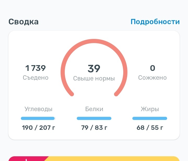 Ну что ж, я переела. И вчера, и сегодня. Оттормозилась об тренировку как обычно. Не знаю, что бы я делала, если бы не мои занятия. Они прямо очень помогают вернуться в режим после нарушений. В животе тяжело, мучает отрыжка и газы. Вот зачем жрала? Ответ знаю, искала чувство сытости, вот это самое свинское чувство плотно набитого живота. Нашла. Очередной раз убедилась, что ощущение пустого подтянутого живота мне нравится больше. Я же не свин. Алкашку не пила, срыв ну вот буквально на ровном месте. Стресс не выше обычного, но Остапа понесло. Торт, печенье в промышленном количестве, шоколад Мерси две дольки вдобавок к плотному обеду. Подкрутила себе калории до 1700, попробую набирать эту сытость легально.