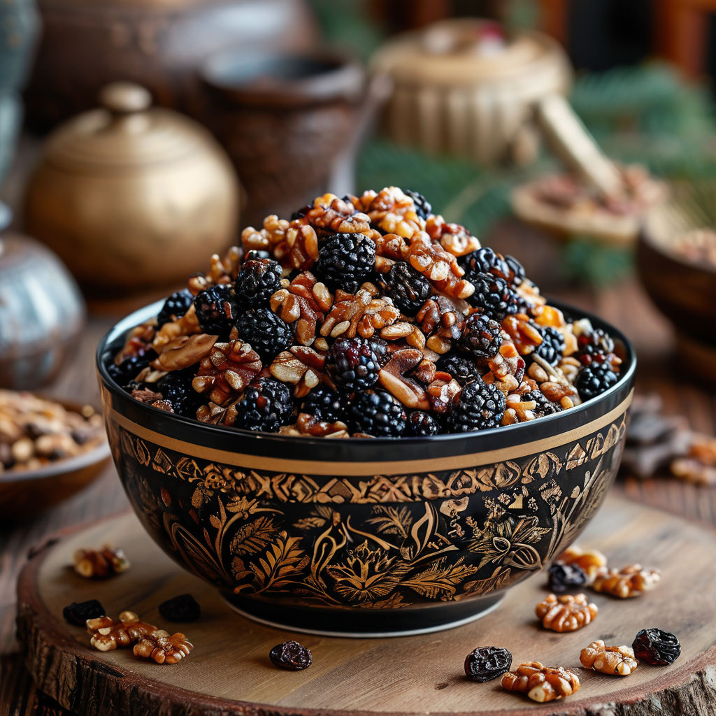 Ингредиенты пасты Амосова: Курага, финики, изюм, инжир, орехи, лимон. Допускается использование специй или семян: имбирь, корица, гвоздика, кардамон, лен, чиа или тыквенные семечки. Витамины и микроэлементы: Витамины: A, E, K, PP, C, группа B.