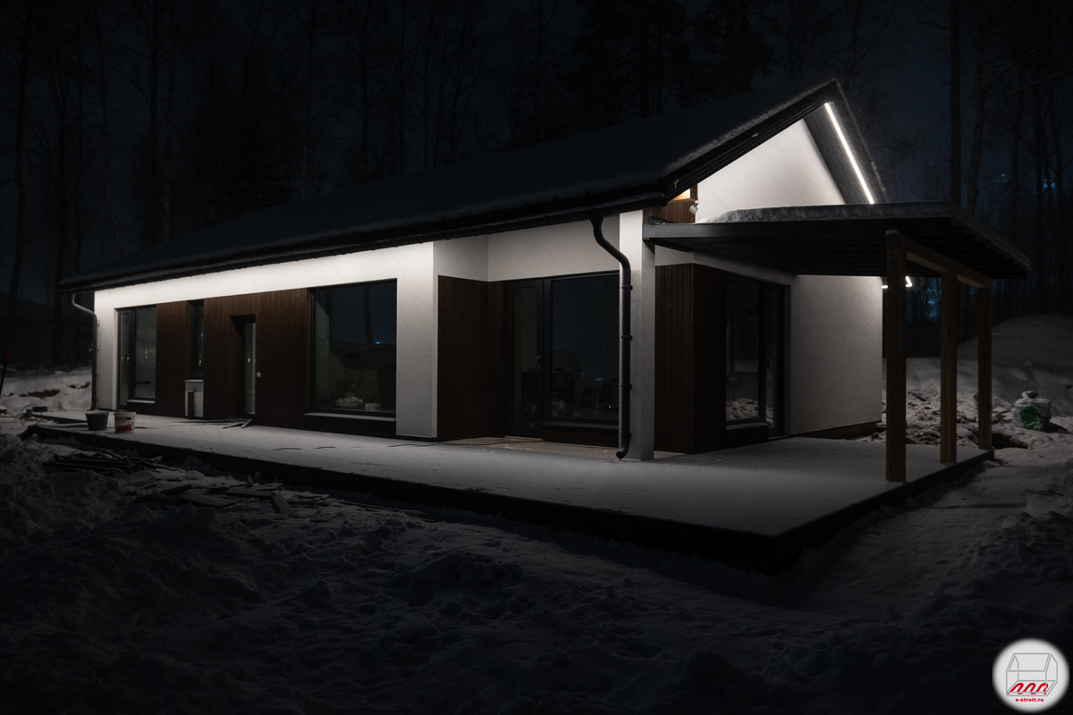 Как бы то ни было, теперь в вечернее время дом смотрится весьма стильно.