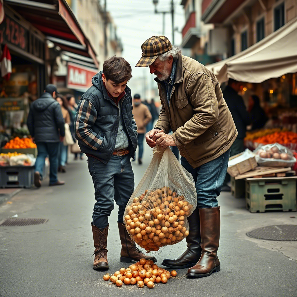 — Севший, — вздыхает. — Поезд через двадцать минут, а я... — И тут мешок его подкашивается, лук высыпается на асфальт, как конфетти после Нового года. Ну что делать? Присел, начал собирать. Дед еле на корточки опустился, дышит тяжело. Говорю: «Давайте я». А сам думаю: «Вали уже, опоздаешь — свой лук в теплушке везешь, что ли?». Но руки сами работают — луковицы в мешок швыряю, будто мячики в корзину. — Спасибо, сынок, — хрипит дед, встаёт, д