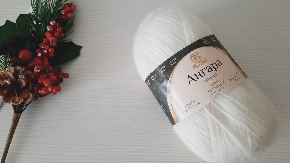 ПРЯЖА. Пряжа от Камтекс АНГАРА в 100г- 250м. Состав : 35%- мохер, 15% - шерсть кроссбред, 50%- акрил. Мягкая пушистая пряжа. Шапку вязала на спицах № 3,5 мм. длина лески 40 см. для макушки 80 см. Набрала 86 петель (с запасом) крючком из дополнительной нити, т.к. шапка двойная и мне нужны открытые петли. Основной пряжей подняла (из каждой петли цепочки) 84 петли и вязала по кругу резинку 4х2 - 4 лицевые, 2 изнаночные. Провязала резинкой в высоту 6 см. далее перешла на узор. Каждый рапорт узора выделила маркерами. 84 петли : 12 петель рапорта =7 рапортов узора на шапке. Рапорт узора составляет у меня 12 петель и 28 рядов. Каждый рапорт разделила маркерами перед двумя изнаночными. Далее вязала по описанию ниже. Рапорт узора составляет 12 петель и 28 рядов. ОПИСАНИЕ УЗОРА: 1 РЯД- 2 изнанчные, 3 лицевые, 2 петли вместе с наклоном вправо, 1 накид, 1