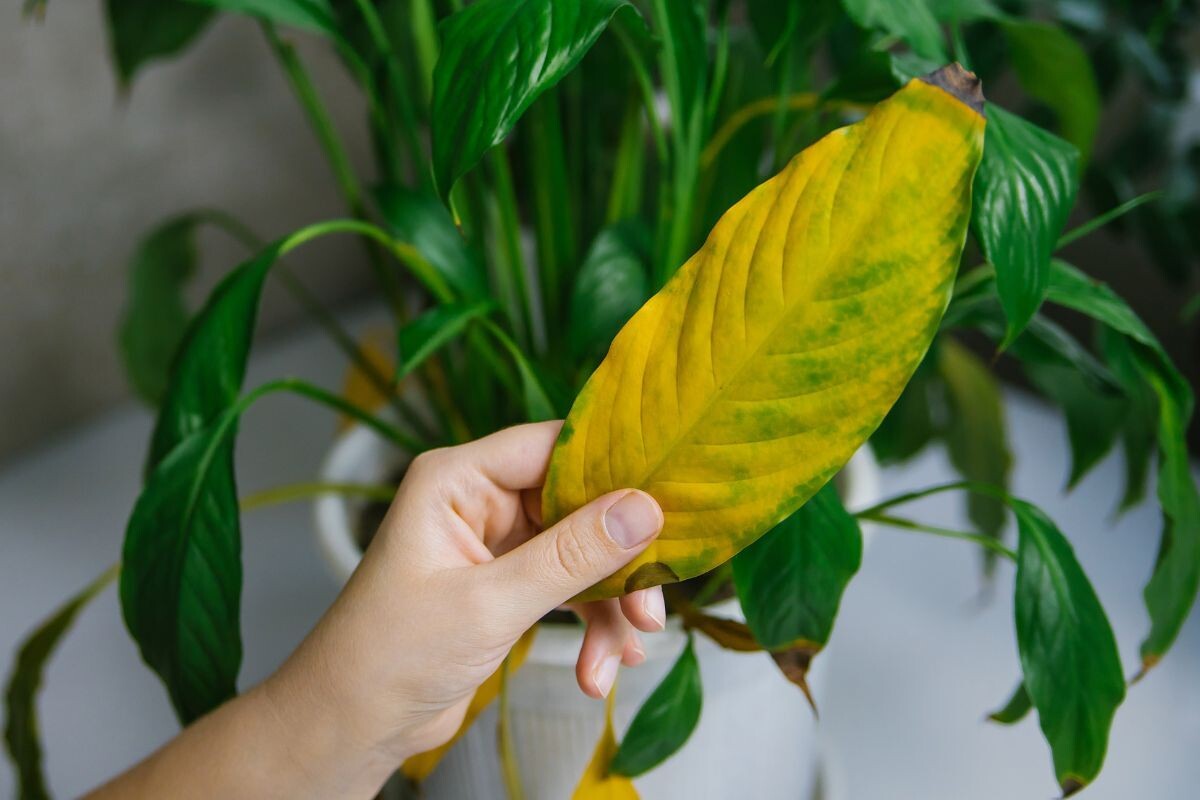 Иногда листья спатифиллума желтеют из-за вредителей, таких как паутинный клещ или трипсы. Они могут быть почти невидимыми, но их присутствие проявляется в виде липких пятен или тонкой паутины.