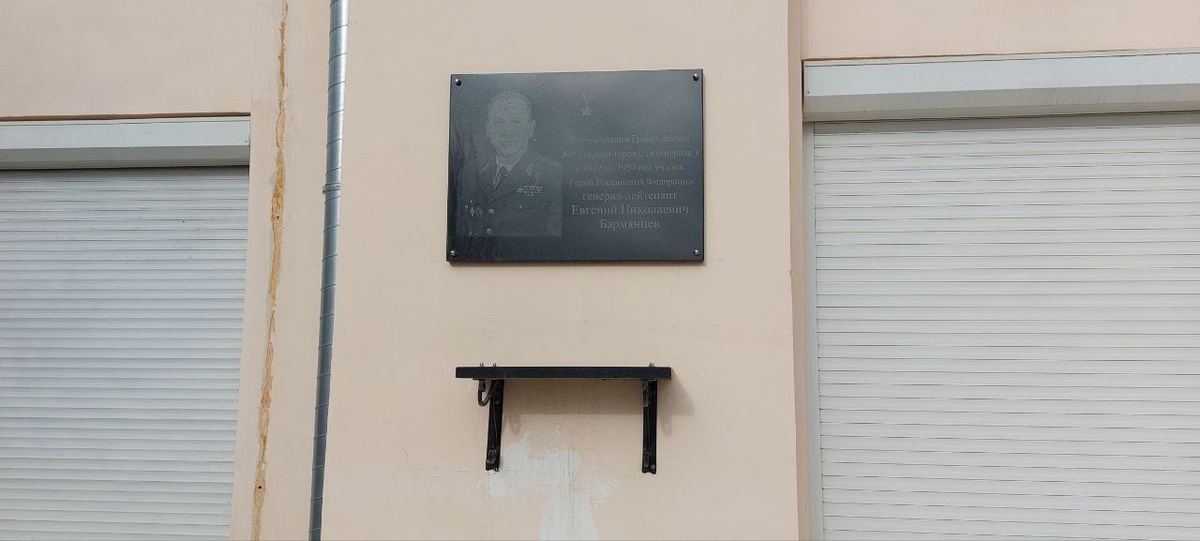мемориальная доска на здании детского сада 23, бывшей школы 41, по ул Охотской, города Волгограда.