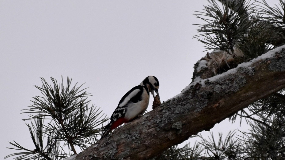 В Сонковском районе Тверской области проворный и голодный дятел искал обед на пушистой сосне и не заметил, как стал героям фоторепортажа местной жительницы. Как рассказала ТИА Юлия Афанасьева, в чей объектив попалась красивая птица, фотографии сделаны в деревне Божонка Сонковского округа Тверской области в минувшие выходные. Юлия разместила снимки на своей странице в ВК, подписав пост: "Хочешь есть - умей вертеться!"©ТИА