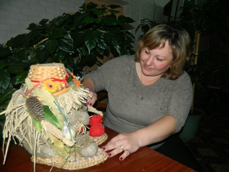 Уже давно стал помощником и единомышленником понимающий муж Сергей. Из медной проволоки он ловко крутит заготовки маленьких бутафорских салазок, велосипедов. Обработанные джутом, они обретают вид настоящих, очень милых и привлекательных. Их Оксана Юрьевна умело вплетает в стройную композицию подарков, проявляя при этом чудеса настоящего мастера-декоратора. Особо обожает новогодние, ко Дню влюблённых, к 8 Марта, дням свадьбы и рождения… Да мало ли. Однажды сделала шикарный букет от учеников для учителя, состоящий из 25 волшебных цветов, а внутри каждого – конфета! Всё было искусно упаковано в прозрачную обёртку. Красота и изыск! Большая корзина, купленная в цветочном магазине, пошла на оформление подарка для новопавловских молодожёнов. Среди красивых роз «порхали» нежные бабочки и уютно устроились фигурки невесты в фате и жениха в цилиндре и фраке, умело выточенные из пенопласта…