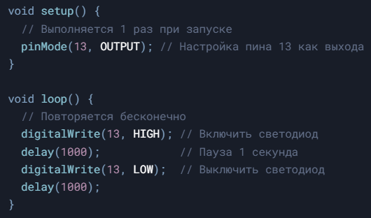 pinMode(13, OUTPUT); // Настройка пина 13 как выхода }