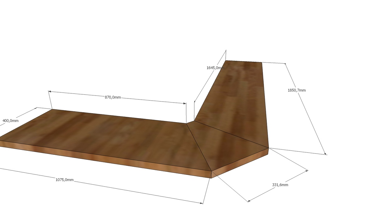 Всем привет! Решил написать статью, так как работа проделана и возможно кому-то будет интересно, а может даже найдёте полезную информацию для себя. К сожалению снимать видео не было возможности, так как съёмка это как минимум 50% времени от процесса изготовления, а я был ограничен сроками, заказ нужно было сделать как можно быстрее. Итак, имею в качестве материала подоконники из дуба (материал заказчика), очень плохого качества, которые были облицованы шпоном и косяки открылись только после удаления шпона. Заказчику было всё показано, он согласился делать из этого. Я в свою очередь озвучил, что такой плохой материал добавит мне работы и увеличит срок изготовления, что непосредственно скажется на цене. В общем всё обсудили, и только после этого я приступил к работе. Первым делом создаю 3D модель столешницы, опираясь на размер готового основания. Это позволяет избежать ошибок, и производит большое впечатление на заказчика. Вопросов "а чо так дораха?" не будет, потому что человек наглядно