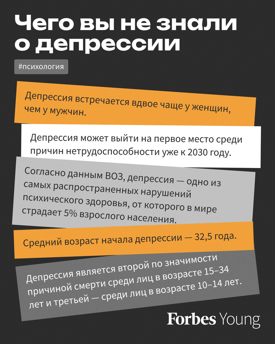 Продолжаем говорить о депрессии (ну и что, что в День рождения). Многие знаменитости признаются в том, что страдают от депрессии. В их числе певица Билли Айлиш и певица и актриса Селена Гомес, звезда сериала «Ривердейл» актер Коул Спроус. О том, что справились с тяжелой депрессией заявляли автор поттерианы, писательница Джоан Роулинг и супермодель Белла Хадид. Но не всем удалось победить болезнь: среди тех, кто умер при невыясненных обстоятельствах или от самоубийства с тяжелой депрессией были актеры Хит Леджер и Робин Уильямс, секс-символ и актриса Мэрилин Монро, соул-дива Эми Вайнхаус, легендарный рокер и солист группы Nirvana Курт Кобейн и вокалист группы Linkin Park Честер Беннингтон. Собрали список того, что можно посмотреть и почитать на тему депрессии Посмотреть: лекцию о депрессии американского нейроэндокринолога, профессора нейробиологии, неврологии и нейрохирургии в Стэнфордском университете Роберта Сапольски, драму о постродовой депрессии «Талли» режиссера Джейсона Райт