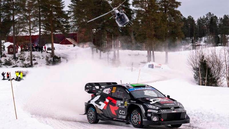 Элфин Эванс из «Toyota» вышел из постоянно меняющейся пятничной битвы на ралли WRC в Швеции с небольшим отрывом, в то время как в напряженной борьбе за первые места отрывы в лидирующей пятерке составили всего лишь 9,1 секунды. Единственное настоящее ралли FIA WRC по снегу и льду стало днем переменчивой удачи с многочисленными сменами лидеров на семи сверхбыстрых спецучастках, которые определялись сплошным льдом и вездесущими снежными заносами. Пилот «Toyota» Эванс задал утренний темп и лидировал на дневном сервисе, но по мере того, как условия для второго заезда по тому же циклу спецучастков менялись, менялась и таблица лидеров. Такамото Кацута ненадолго вырвался вперед после дневного открытия на своем «GR Yaris», прежде чем Эванс немедленно отреагировал, вернув себе первое место. Затем, когда темнота опустилась на 6,71-мильный доп Back 2, Отт Тянак из «Hyundai» вырвался вперед – только чтобы потерять свое преимущество на заключительном допе Umea Sprint 2, поскольку изношенные шипова