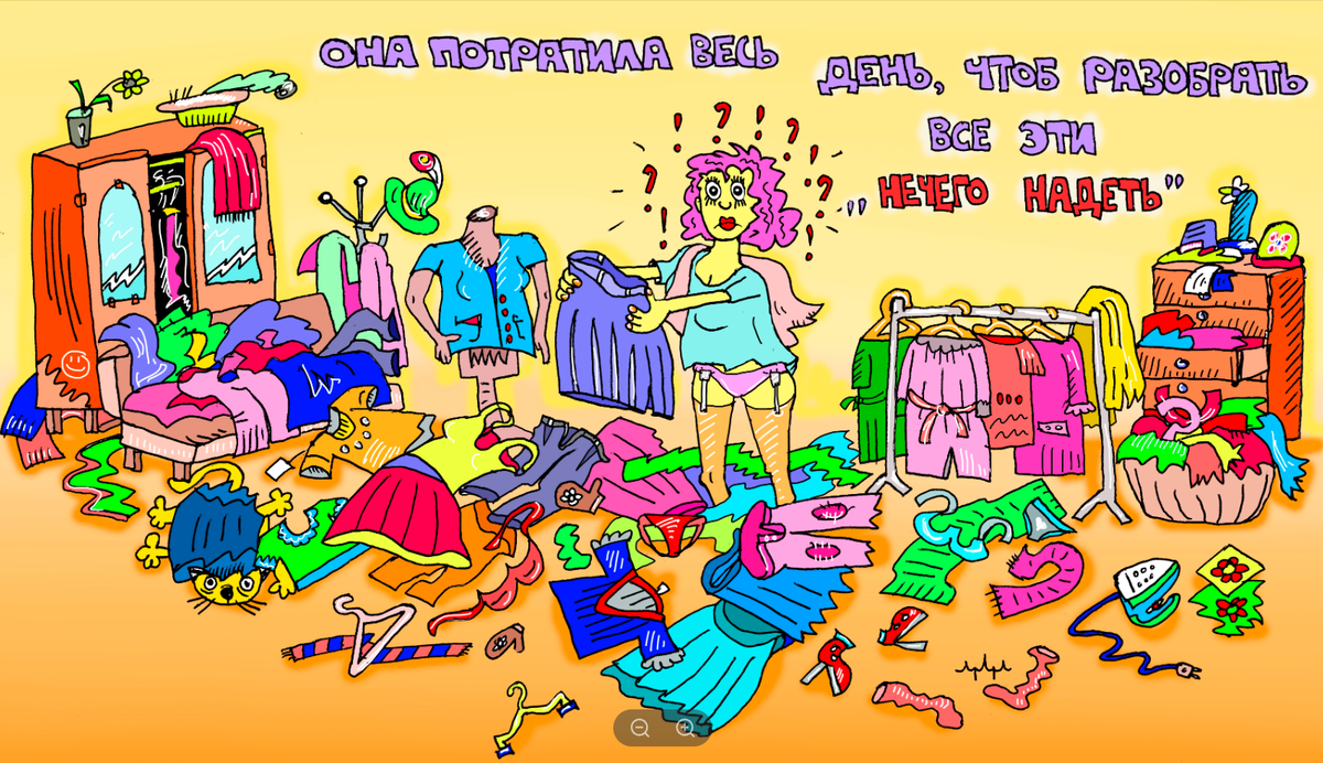 Привет, друзья! Ну что, кто из нас хоть раз не стоял перед зеркалом, задумчиво глядя на свое отражение и не обвинял в предательстве рубашку, платье или джинсы? Типа: «Ну и что это такое? Еще вчера сидело идеально!» А сегодня, значит, ткань села, штаны предательски обтянули, и, конечно, это не мы поправились, это одежда полнит! Одежда терпит от нас много. Неудивительно, что карикатуристы эту тему не упускают. Давайте посмотрим, как художники шутят о моде, стиле, шубах и той самой извечной проблеме – “нечего надеть” при полном шкафе. Женщины особенно падки на обновки. Не зря же придумали шутку, что лучший способ намекнуть мужу на шубу – поставить перед ним "Рыбу под шубой". Многие карикатуры бьют точно в эту точку. А художники и рады стараться, обыгрывать шутку на разный лад. Хочу сразу оговориться, что одежда — это не просто куски ткани, сшитые воедино. Это знаки, символы, рассказы о нас без единого слова. Кто-то надевает строгий костюм и идёт изображать серьёзного человека, кто-то уку