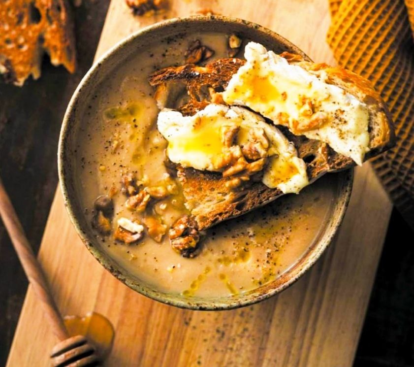 Рецепт супа-пюре из пастернака, каштанов и тостов с медовым бри