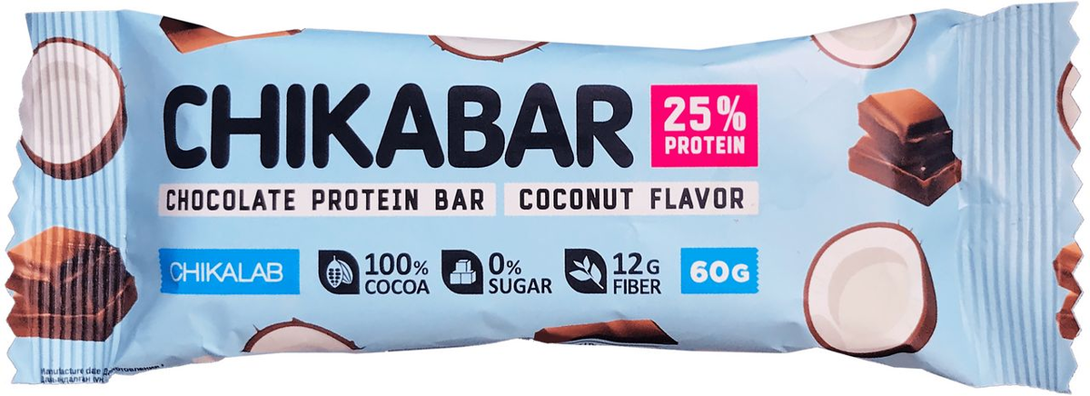 Chikabar «Кокос» — это пример «протеиновой» сладости, где классический сахар заменён волокнами и подсластителями, а часть углеводов замещена белком. Такой батончик: