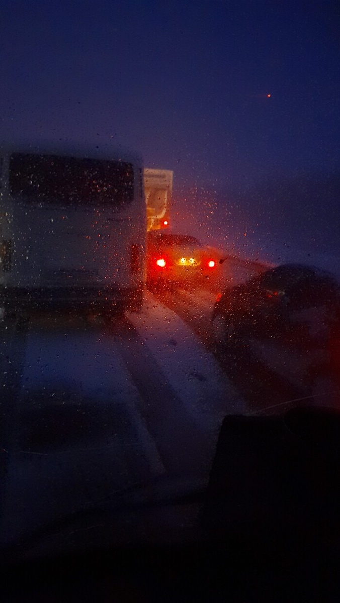 А дело было не далеко от поселка Калиновка на трассе М4 Дон. Груз был простенький: кабеля да трансформаторы для починки порывов в электросети. В кабине две подушки, запас воды, несколько газовых баллончиков, походная печка и ноутбук. И тут снег. Для конца марта, это действительно было внезапно. У нас на юге области только зацвёл абрикос, а тут такое. И ехать-то было совсем немного до города, где под тяжестью стихии рвались провода. Ехали - со скоростью пешехода, местами стояли, потом стояли долго. Грели воду, раздавали чай, кофе, сажали в кабину детей, пока работала автономка. Откапывали застрявших у обочины. Что там у нас сегодня с утра? Штормовое предупреждение? Надеюсь пронесёт. Берегите себя и всех тех, кто рядом и не вносите в чёрный список, спешащих на помощь, особенно если им было не безразлично. Пойду, работать) Ещё встретимся.