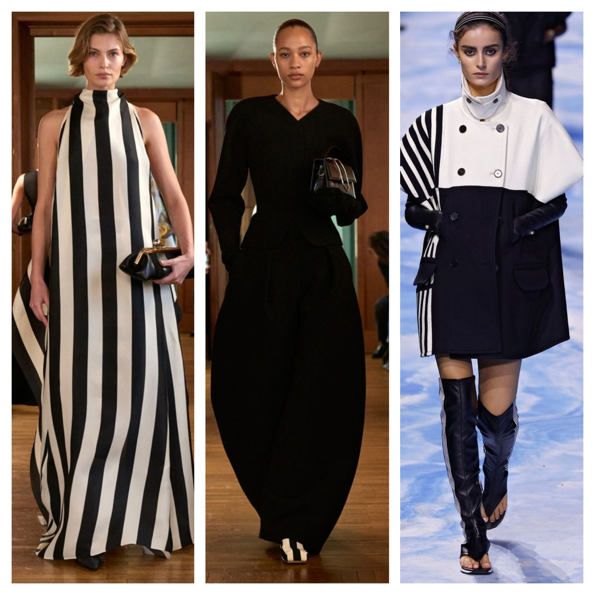 Как выглядят современные принты на одежде? По каким признакам отличить старомодный "горох" от актуального рисунка polka dot? Почему "огурцы", деревенский цветочек и ретро-принты снова стали трендом? Разбираем примеры с модных показов и учимся создавать комплекты с модными новинками. Не секрет, что последние несколько лет полоска удерживает лидирующие позиции по популярности. Если раньше на пике моды была горизонтальная полоска, то теперь её потеснила вертикальная. Весь 2024 год представители мира моды отдавали предпочтение одежде с тонкой полоской, а в 2025 году дизайнеры предлагают дополнить её широкой контрастной чёрно-белой полоской. Повторяем образ: ✔️Джемпер за 6000₽ ✔️Юбка за 2900₽ ✔️Пальто за 9600₽ ✔️Ботильоны за 6300₽ ✔️Сумка за 2800₽ Несмотря на новые тренды 2025 года, тонкая полоска сохраняет свои позиции, оставаясь в списке актуальных тенденций. С её помощью легко создавать спокойные, деловые, структурированные и элегантные образы. Более того, вертикальная полоска спос