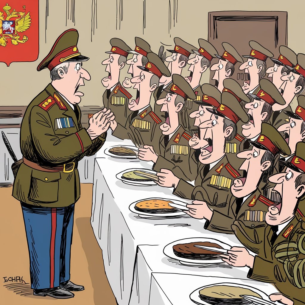 Приветствую, дорогие читатели! 👋 Хотите забавную, но поучительную историю? Их есть у меня! Ловите историю про бунт в армейской столовой. Оказывается, один "голодный бунт" может преподать уроки сразу в двух сферах – бизнесе и психологии! Вот как это было… Вспомнились мне военные сборы, куда нас, офицеров-двухгодичников, согнали для повышения квалификации. Приехали мы "никакие" после ночной дороги, и на завтрак дружно забили, проигнорировав дежурного. Но после утренней "заправки" кроватей на плацу, голод нас пробрал нешуточный! К обеду построились как шелковые. Заходим в столовую, а там… "меню для гурманов": стаканы с компотом и тарелки с какой-то баландой, именуемой супом, а так же размазня, напоминавшая пюре (пюре, похоже, скончалось не менее трех дней тому, ибо было синюшное) с куском жареной селедки. Офицерское питание, ага, как же! Настроение упало ниже плинтуса. Но тут замы по воспитательной работе (они же замполиты по-старому) возмутились: "И это всё?!". Начальник столовой, ста
