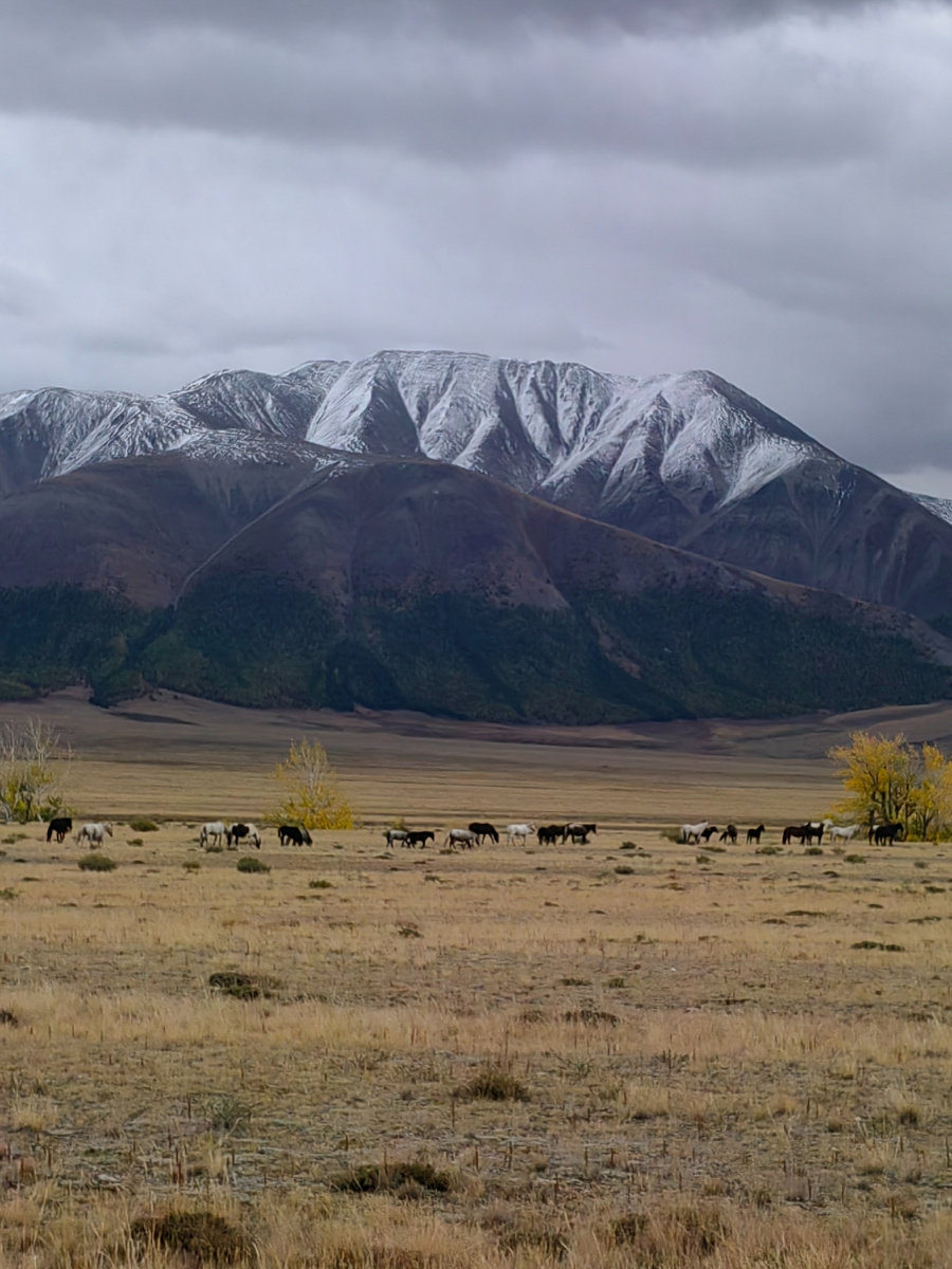 Да, топили печку сами, но в этом есть своя прелесть. Хочу тепло- топлю. Дрова жаркие. Трещат в печи. Очень атмосферно и приближает к природе. А еще ручей, который в пяти метрах от юрты, журчит, разговаривает. Утром кажется, что идет дождь. Но нет, это ручей плещет и шуршит. Бронировали в марте на сентябрь, чтобы уже точно были места. И цена зафиксировалась. Когда приехали, узнали, что все стало дороже. На этот раз мы ехали втроем: мы с мужем и моя мама. Сказки про злобную тёщу не про нас, очень душевные отношения у мужа к теще. Мама уже была с нами на Алтае, это второй ее опыт. Учитывая ее возраст, 75 лет, мы остановились не на юрте, а на аиле, который стоит на въезде в кемпинг. Выбор основывался на том, что рядом с аилом есть туалет, хотя и деревенский, но до нормального туалета ночью вдруг маме идти от юрты было бы неудобно. У аила есть свое костровище, мы мечтали вечером посидеть у костра. Есть и скамеечка у ручья. Но мы не учли одного. Мы знали, что в этих местах вечером дуют сильные ветры. Начинают дуть часов в шесть вечера, с приближением сумерек прекращаются. Но! Это летом. А мы поехали в сентябре. Ветра дули, не прекращаясь, почти круглые сутки. О посиделках у костра пришлось забыть. О большинстве экскурсий то же. В горах ветры еще сильнее. Но мы не унывали. Гуляли по окрестности, это очень интересно. Пейзажи вокруг кемпинга это сногсшибательный вид. Пасутся кони и верблюды. Ручей опять же. Можно подняться пешком на местный ретранслятор. Виды с него, конечно, не как с Акташского, но сам процесс подъёма - преодоление себя. Напишу отдельно. Никак не могли собрать группу на экскурсию, кемпинг в сентябре уже не был заполнен. Куда предлагали поехать- нам было не интересно, поскольку уже были. На помощь нам пришел организатор индивидуальных поездок Александр. Честь ему и хвала за экскурсию! Целый день он возил нас по замечательным, интересным, не попсовым местам.