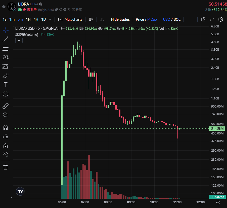 Как только появились новости, рынок быстро пришел в неистовство. Цена LIBRA взлетела до 4,61 доллара США всего за 40 минут, что соответствует РЫНОЧНОЙ капитализации в 4,6 миллиарда. Однако хорошие времена длились недолго. Цена валюты сразу же подверглась резкой распродаже, упав более чем на 88% всего за несколько часов, и текущая цена составляет 0,526 доллара США. Несмотря на это, ее рыночная капитализация по-прежнему достигает 500 миллионов долларов США, и всего через 5 часов после выхода в Интернет объем транзакций превысил 1,3 миллиарда долларов США.Однако это внезапное безумие с ”выпуском президентских монет" быстро вызвало широко распространенные сомнения во внешнем мире: являются ли столь резкие колебания цен неизбежным результатом рыночных спекуляций или это более глубокая тень?В настоящее время аргентинские официальные лица никак не отреагировали на этот вопрос.