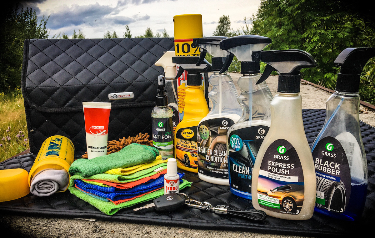 Чистящие средства для салова машины, стоимость от 200 руб, ассортимент просто зашкаливает.