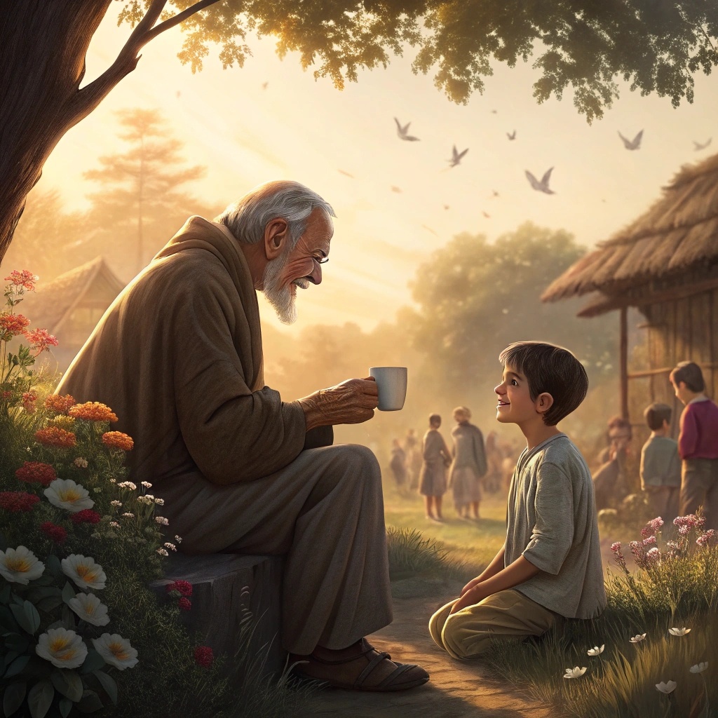 В одном небольшом городке жил старец, который считался самым счастливым человеком. Люди приходили к нему за советом, но никто так и не понял, в чём его секрет. Однажды молодой человек, измученный поисками счастья, пришёл к старцу и спросил: — Как мне найти счастье? Я искал его в деньгах, славе, любви, но оно всегда ускользает. Старец улыбнулся и предложил юноше задание: — Принеси мне полную чашу воды, но не пролей ни капли. Юноша налил чашу доверху и, осторожно держа её в руках, пошёл по улице. Он шагал медленно, боясь расплескать воду, и не замечал ничего вокруг. Вернувшись к старцу, он радостно воскликнул: — Я не пролил ни капли! — А что ты видел по дороге? — спросил старец. — Ничего, я был сосредоточен на чаше. — Тогда иди и пройди тот же путь, но теперь смотри по сторонам. Юноша снова пошёл по улице. Он увидел, как дети смеются и играют, как солнце ласково касается земли, как цветы раскрываются на ветру. Возвращаясь, он осознал, что часть воды расплескалась. — Теперь я пролил воду,