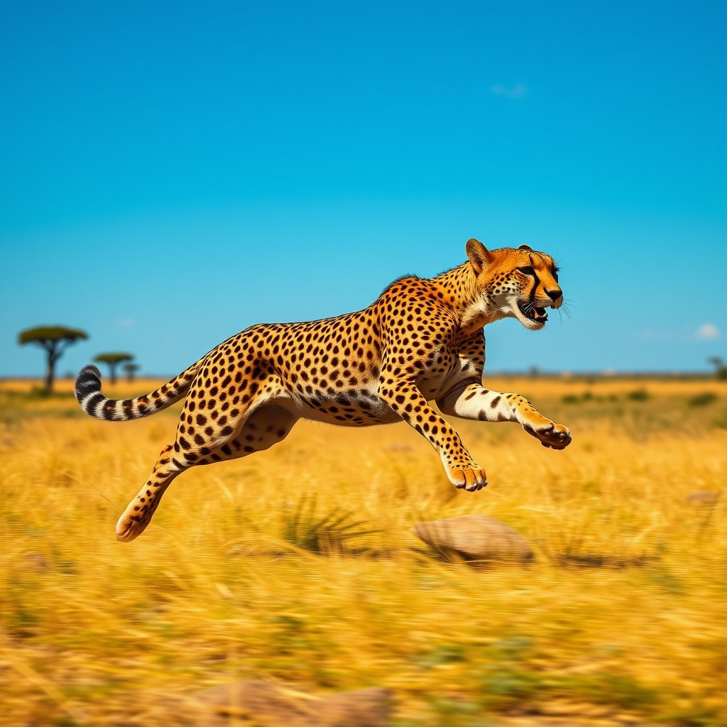 Высокая скорость - главное оружие гепарда в охоте. Заметив добычу, хищник начинает стремительное преследование, при котором каждый его прыжок достигает длины 6-7 метров. Во время погони гепард может совершать резкие повороты, следуя за каждым движением жертвы.
