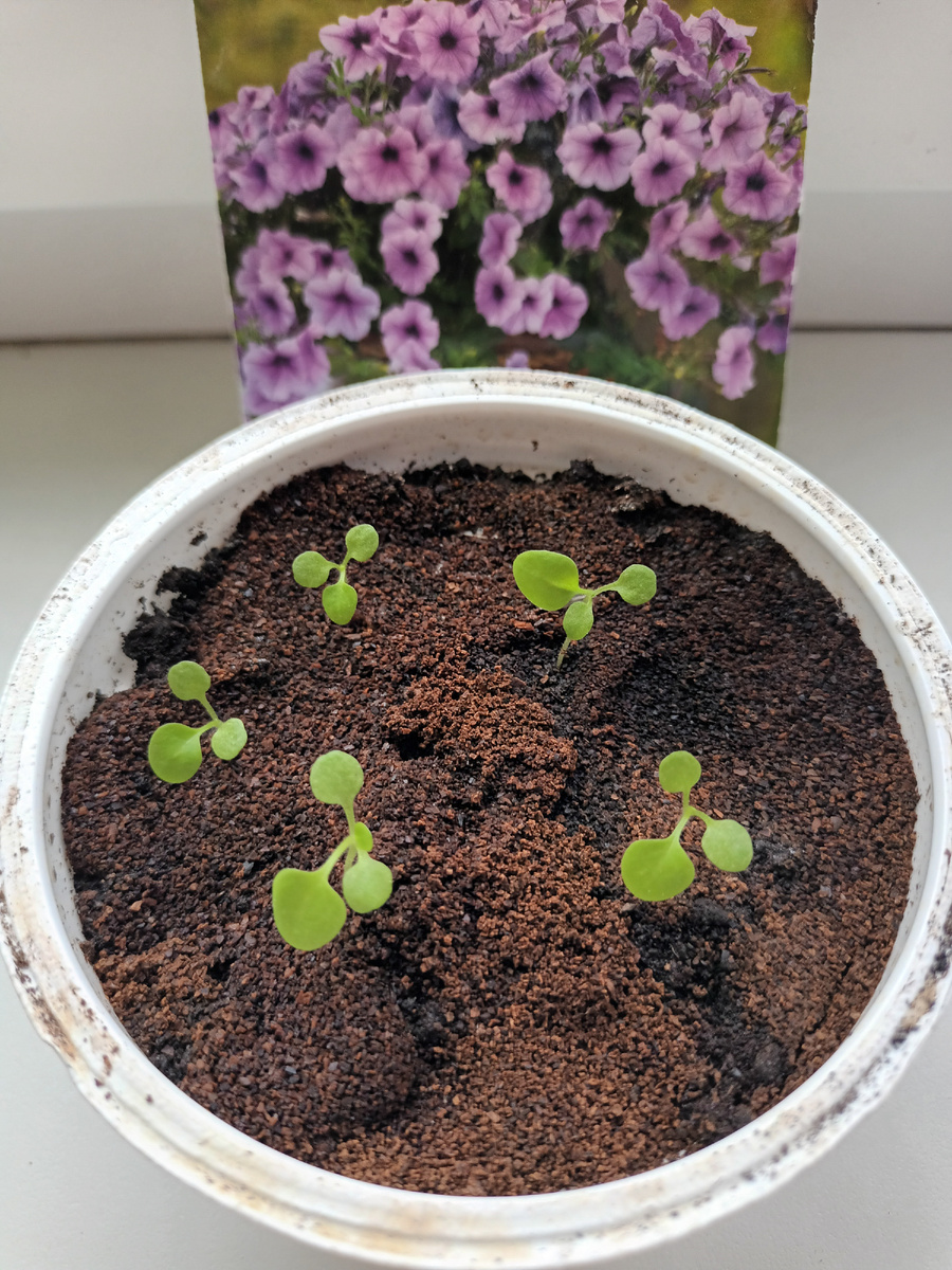 После посева эустомы настала очередь петуний. И опять заморочки с календарем: рано или поздно? Если с эустомой припоздала, то петуньки сеять в самый раз. На обратной стороне всех пакетиков рекомендуют февраль – март. Какие будут весной погоды, никому не известно, точно узнаем осенью, а сейчас и гадать не буду. Что вырастет – то вырастет, а если будут перерастать, прищипну и начеренкую дополнительных петунят. Петуниевую посевную начала с 1 февраля, на текущий момент можно и всходы показать. За неделю взошли все. Самые уверенные росточки у ампельной петунии Изи вейв плам вейн, еще и взошли все 5 штучек. Обещают невиданные купола с несчитанным количеством цветков. Нынче среди петуниеводов пошла мода на пятнистые цветы различной расцветки. Сначала их размножали только вегетативно, черенками, потом агрономы-цветоводы добились семенного варианта. В прошлом сезоне попробовала вырастить крапчатую петунию Млечный путь дип пинк. Из 7 драже удалось довести до цветения только один кустик, и даже с