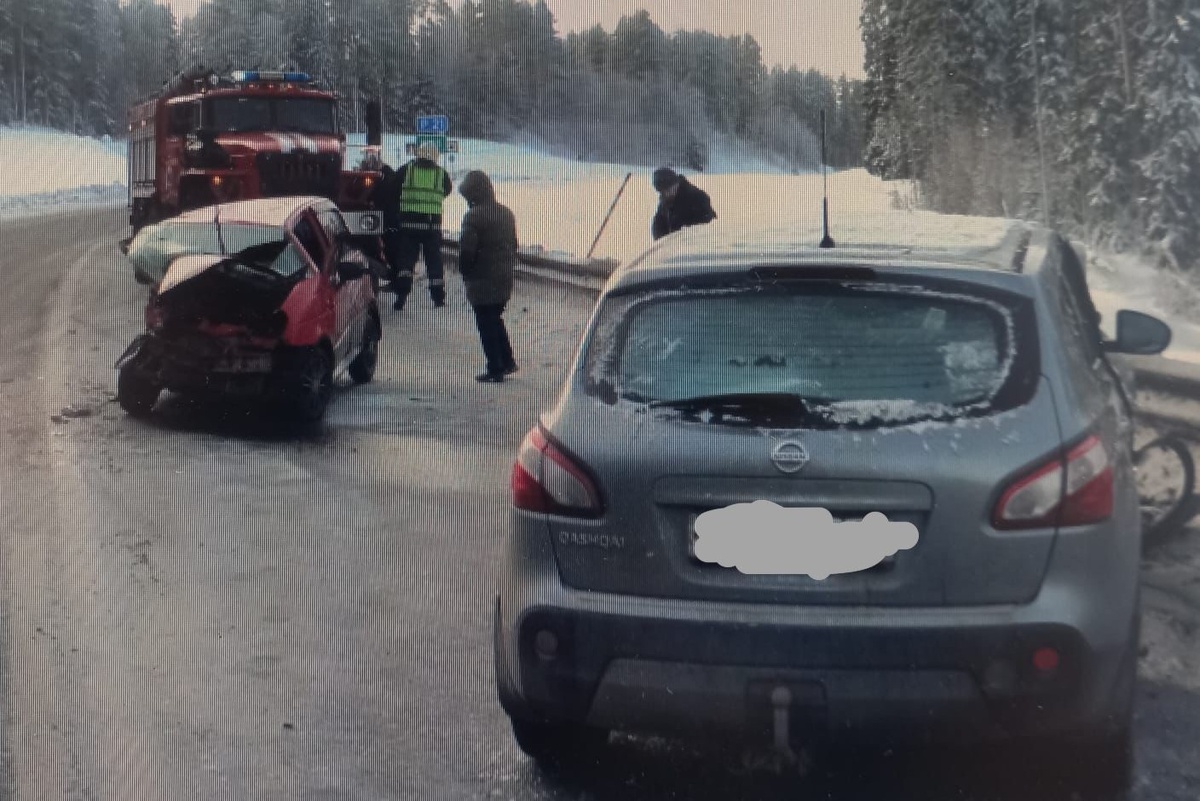 На федеральной трассе в Карелии в лобовую столкнулись два автомобиля